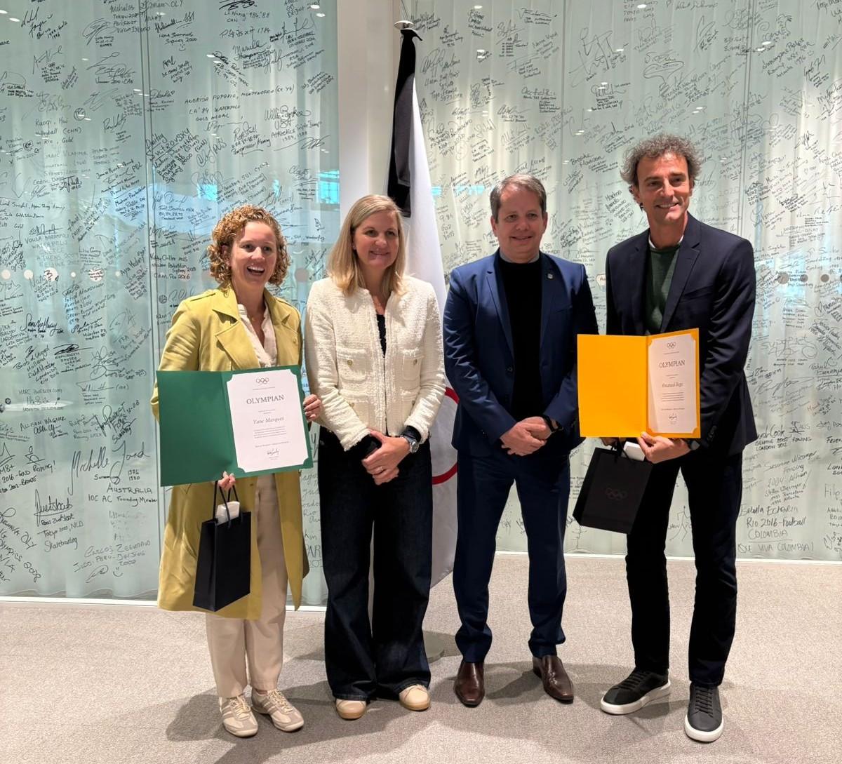 O Comitê Olímpico do Brasil (COB) realizou uma série de encontros e reuniões na sede do Comitê Olímpico Internacional (COI), em Lausanne, na Suíça. A comitiva do COB foi composta pelo presidente, Marco La Porta; a vice-presidente, Yane Marques; o diretor-geral, Emanuel Rego; e a diretora de Comunicação, Marketing e Valores Olímpicos, Manoela Penna. Organizada nos dias 29 e 30 de outubro, a agenda teve como objetivo a apresentação da nova diretoria do COB ao COI e o alinhamento das diretrizes estratégicas para o próximo ciclo olímpico. Na ocasião, Yane e Emanuel assinaram o Muro Olímpico e foram homenageados pelo COI pelas medalhas olímpicas conquistadas na carreira de atletas.